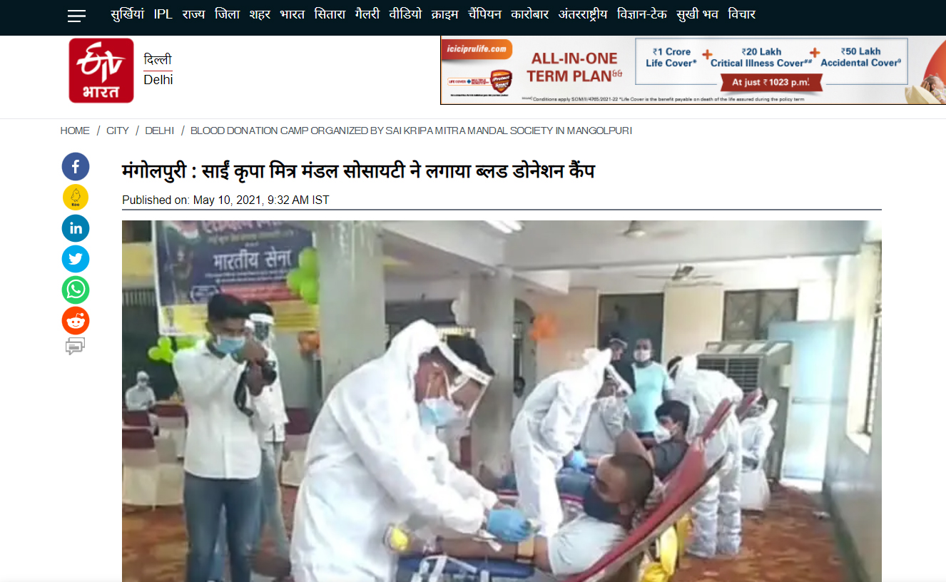 Delhi के Mangolpuri में सांई कृपा मित्र मंडल सोसायटी द्वारा Blood Donation Camp का आयोजन |